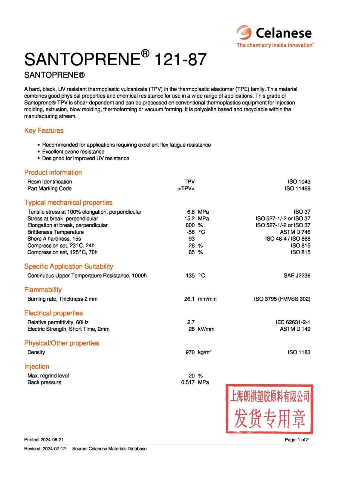 Generic Name: 熱塑性硫化橡膠(TPV) - 提供方: Celanese Corporation